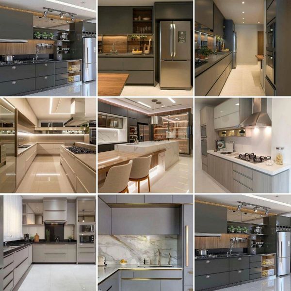 تمامی خطوط در یک راستا از نظر پیوند طرح المان های مختلف به یک شکل گویی بخش های مختلف کابینت مدرن فقط تغییر سایز داده اند؛